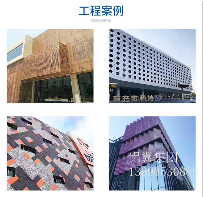 佛山(shān)铝翼集(ji)團(tuán)实力(li)生(sheng)産(chan)加(jia)工(gong)定製(zhi)冲孔铝幕墙單(dan)板、冲孔铝天花(huā)、冲孔铝單(dan)板幕墙、造(zao)型外墙冲孔铝板、廣(guang)告牌铝單(dan)板冲孔板等(deng)工(gong)程(cheng)建(jian)筑裝(zhuang)饰材(cai)料。