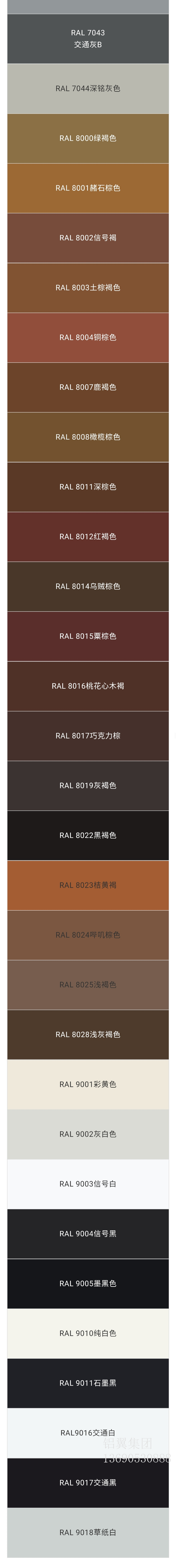 铝翼集(ji)團(tuán)铝單(dan)板色卡聯(lian)係(xi)電(dian)話(hua)13690530888